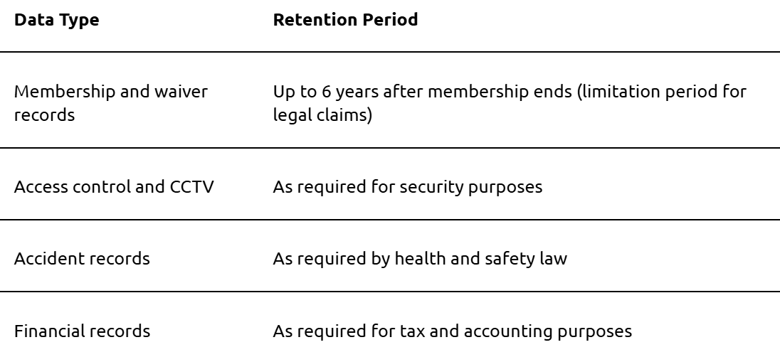 CCTV footage is retained for up to 30 days unless required for longer in connection with an incident or legal proceedings.